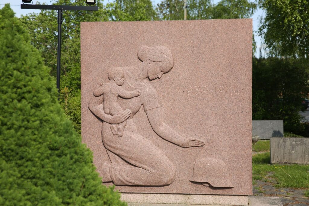 Sotien seurauksena hautausmaalta löytyvät myös sankarihaudat. Punagraniittisen muistomerkin on veistänyt Frans Pehrman vuonna 1951. Se kuvaa surevaa äitiä lapsineen. Kuvanveistäjä Pehrman on tehnyt useita varsin koskettavia sankarihautausmaiden muistomerkkejä.