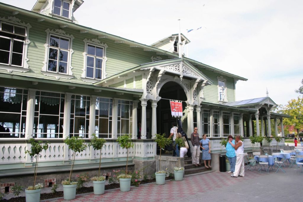 Vanha Kuursaal, tsaarinaikainen pitsihuvila on kunnostettu kesäravintolaksi. Siellä voi nauttia vaikka maukkaan seljankan.