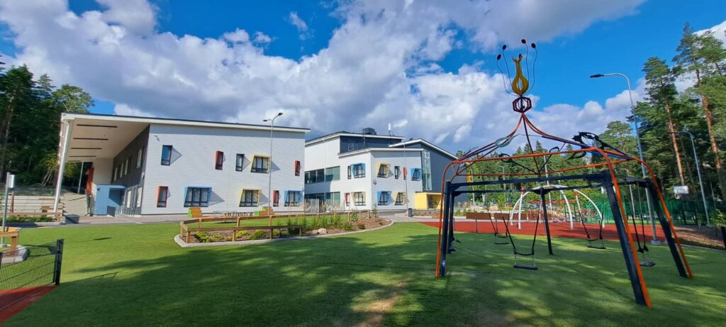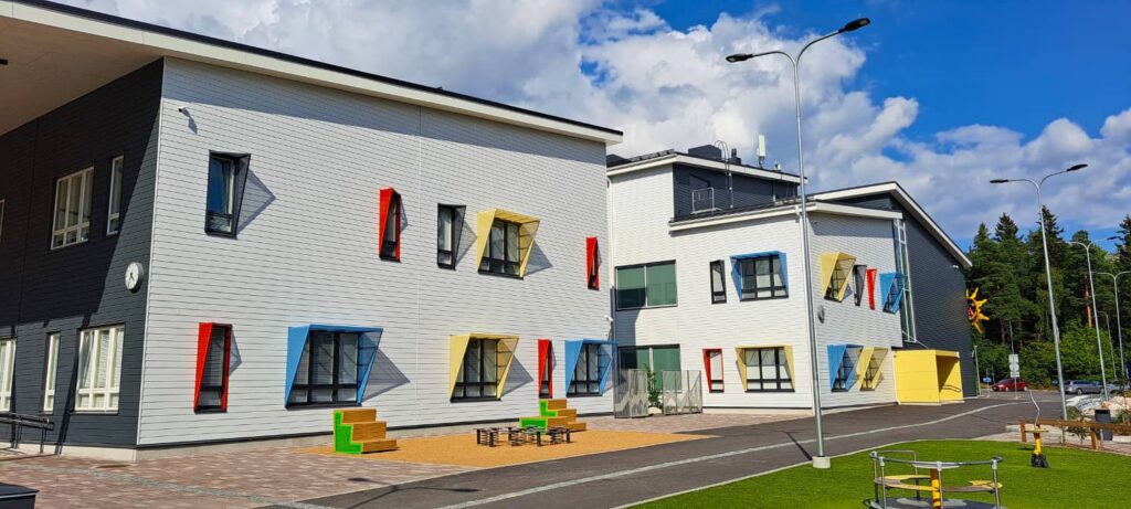 Kaikkialla on siistiä ja puhdasta. Syksyllä 2023 Pääskyvuoren koulun opettajat ja oppilaat saivat käyttöönsä uudisosan, joka integroitiin hienosti vanhan koulurakennuksen kylkeen ja olemassa olevaan ympäristöön. Hanke sisälsi muun muassa opetus- ja hallintotilojen ohella uuden liikuntasalin sekä opiskelijahuollon tilat. Kunnostetut piha-alueetkin ovat varmasti oppilaiden mieleen.