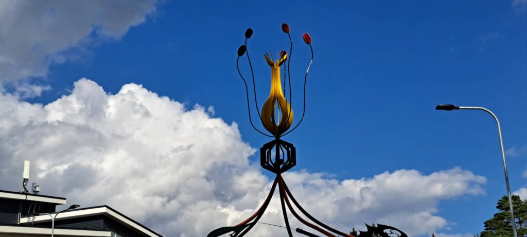 Aurinko-puun läheisyydessä, koululaisten puuhapaikalla, on toinen Anderssonin teos, Pölyttäjien keinu. Sen päällä on metallinen kukkaveistos, joka muistuttaa hyönteisten ja kukkien merkityksestä luonnolle.