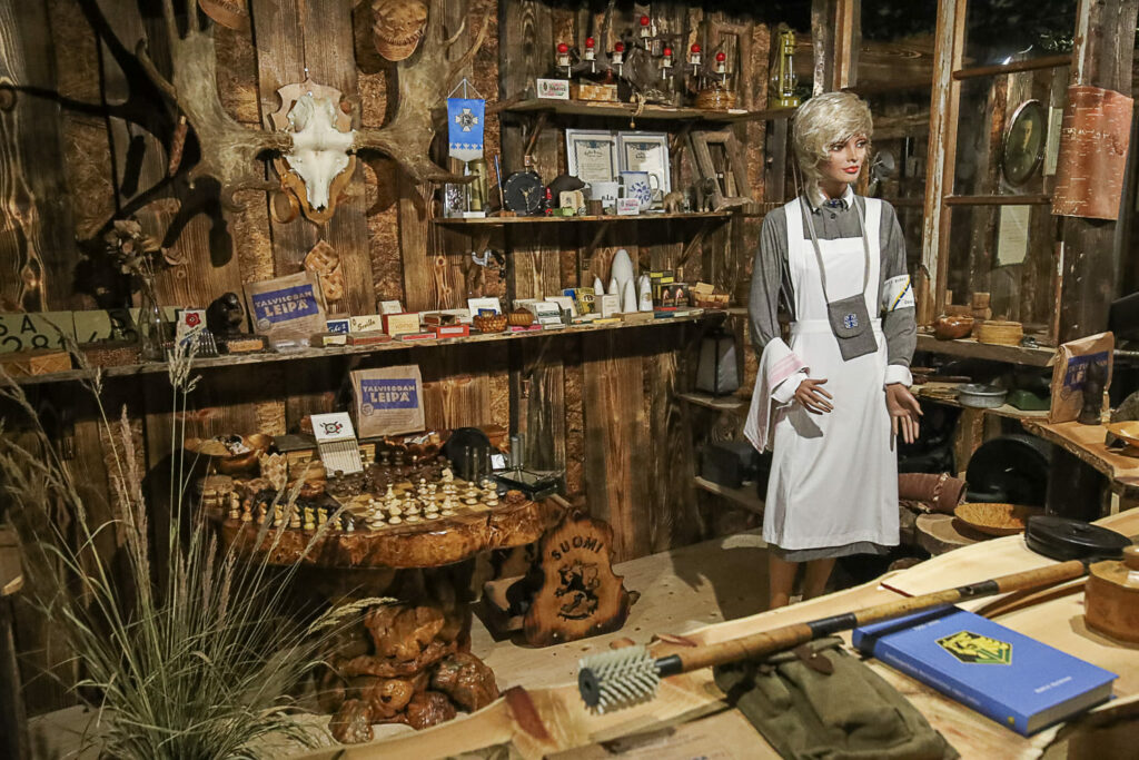 Militariamuseo Karhumäki ei ole pelkästään isännän oma harrastus, myös puoliso on innolla mukana. Vaimo hallinnoi entisaikojen nostalgista kyläkauppaa. Myös perheen lapset ovat olleet isona apuna museo-osastoja rakentaessa. Eli museotoiminnan jatkajiakin löytyy omasta takaa.