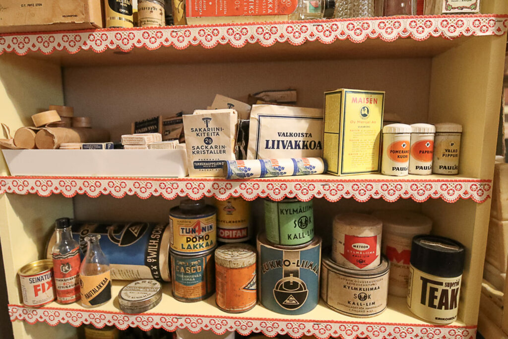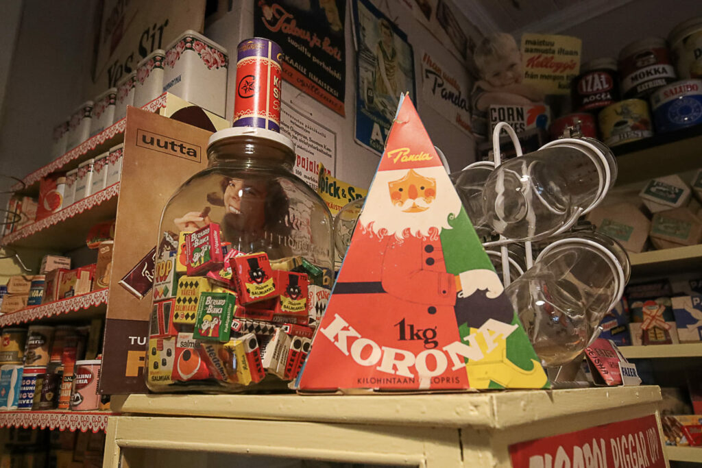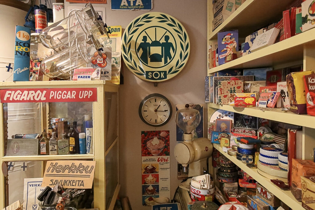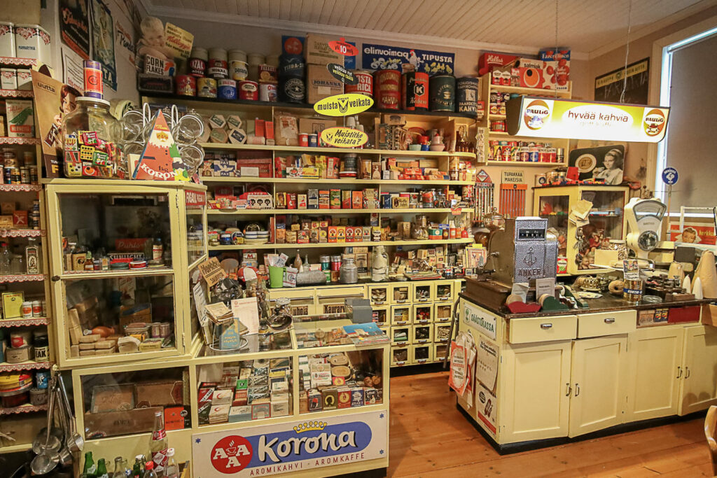 Huone kalustetiin vanhanajan kaupaksi. Tavarat aseteltiin harkiten omille paikoilleen. Lopputulos näyttää enemmän entisajan oikealta kaupalta kuin museolta. Monelle vierailijalle kauppa on täynnä oman lapsuusajan pakkauksia. Osa nimistä on jo kadonnut muistista, mutta kummasti ne palautuvat uudestaan mieleen.