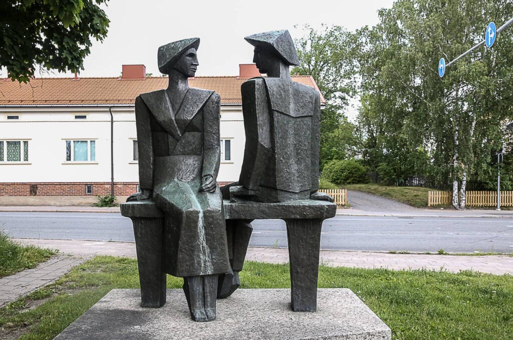 Turun Vähäheikkilässä Kupittaankadun ja Askaistentien risteyksessä kaksi pronssiin valettua naista istuu penkillä vastakkain. Kuvanveistäjä Maarit...
