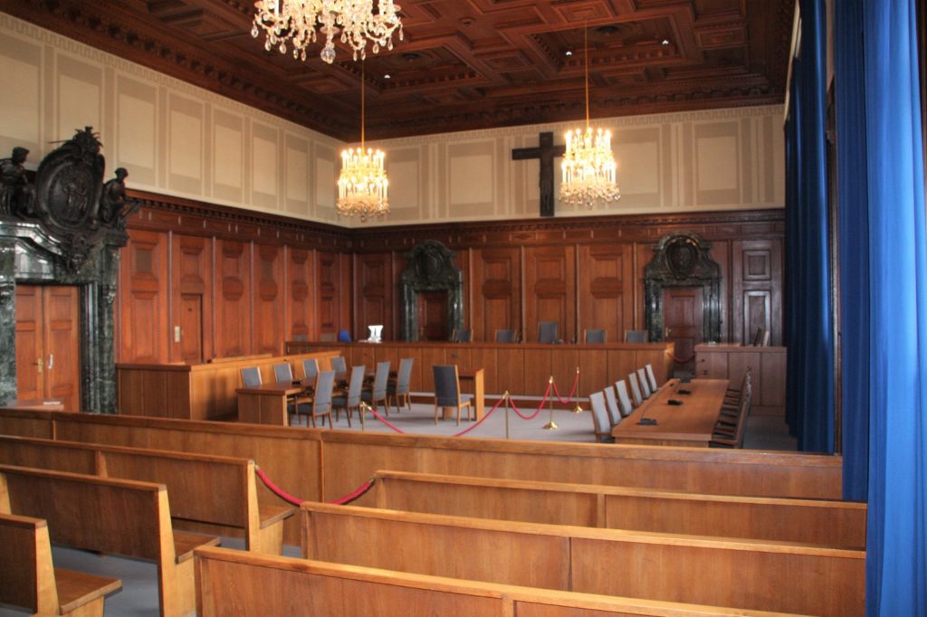 Nürnbergin oikeuspalatsin vahtimestari avaa oven kuuluisaan huoneeseen numero 600. Pääsen kurkistamaan saliin, jossa tehtiin historiaa yli 60 vuotta sitten. Nürnbergin oikeudenkäyntisali on pysynyt alkuperäisessä asussaan ja sitä käytetään yhä samaan tarkoitukseen.