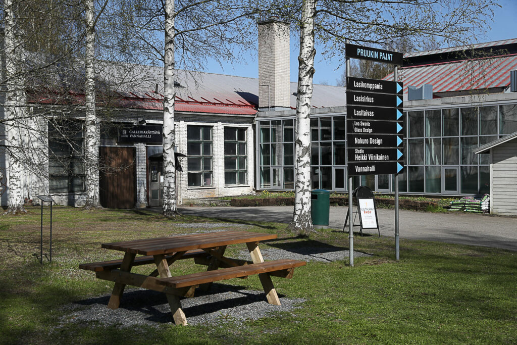Nuutajärven sisätiloissa hehkuu yhä, kun lasinpuhaltajat ja muotoilijat työstävät uusia tuotteitaan. Taiteilijoiden muodostamalla osuuskunnalla on lasikylässä oma liike, vastapäätä Iittalan Outlet-myymälää.