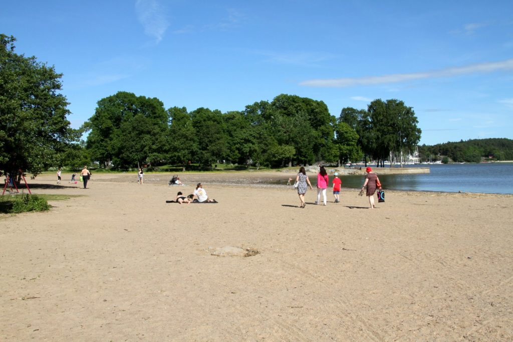Vielä vuosikymmeniä sitten Pitkänsalmen veden laatu oli arveluttava. Nyt vesi on puhdistunut. Vaikka tilaa on, Ispoisten ranta täyttyy aurinkoisena kesäpäivänä. Parkkipaikoistakin on silloin pulaa, joten tänne kannattaa tulla ruuhkapäivinä fillarilla.