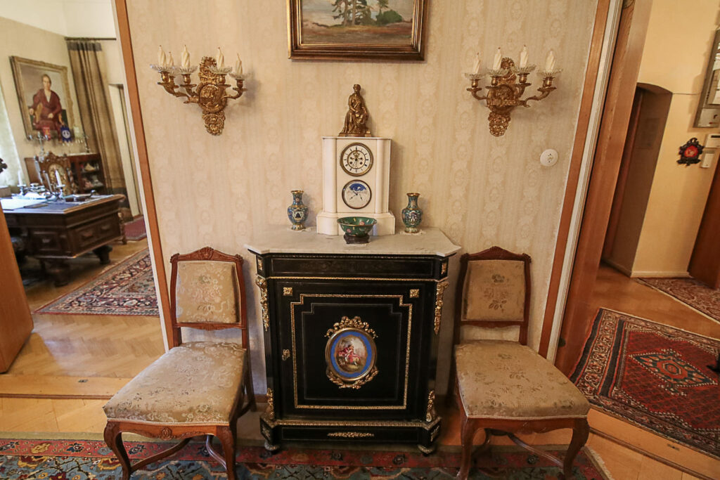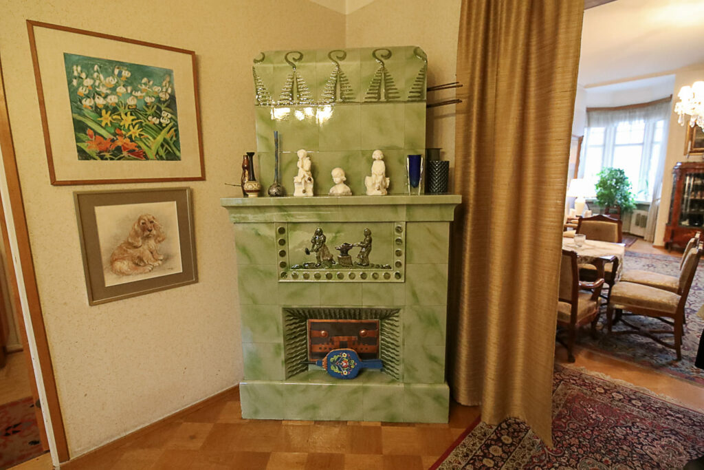 Suurin osa asunnon alkuperäisistä Turun kaakelitehtaassa valmistuneista kaakeliuuneista on säilynyt. Huoneiden seiniä koristavat taideteokset ovat eri aikakausilta, kuten kodin muukin esineistö. Nykyaikaa edustavat väritelevisio ja VHS-kasetit. Huoneiden sisustus ja esineet onkin haluttu pitää juuri sellaisina, mitä ne olivat Sohlbergien eläessä.