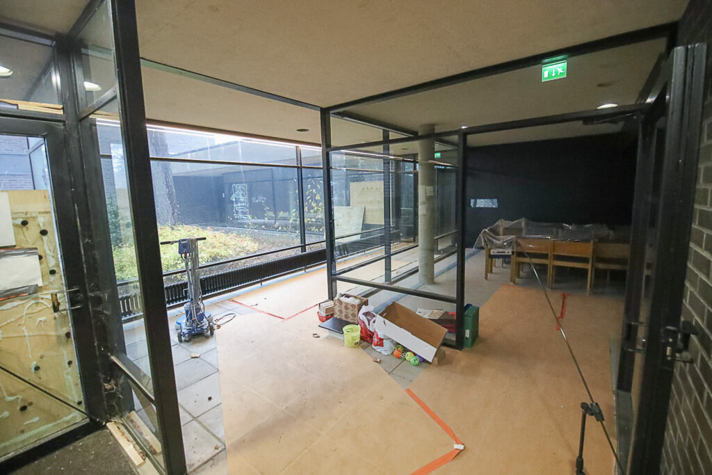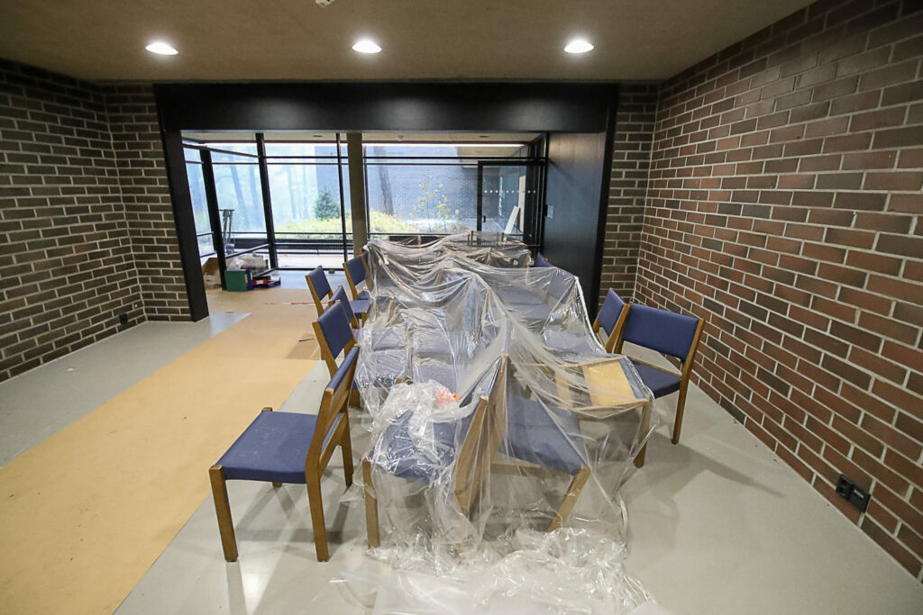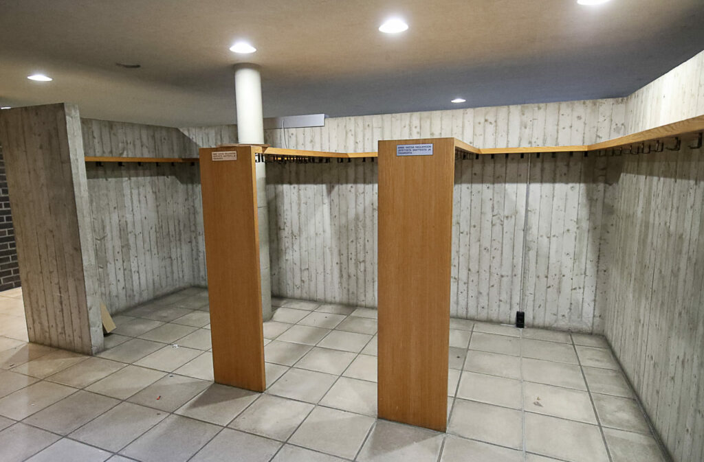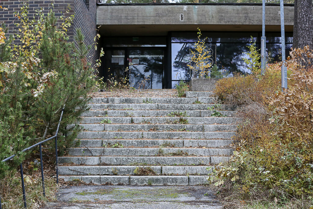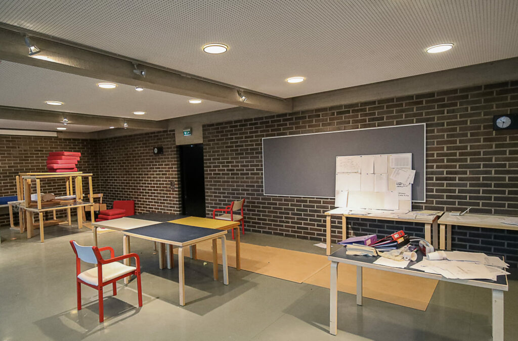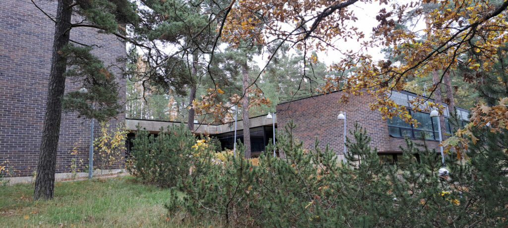Pallivahan seurakuntakeskuksessakin betoni oli isossa roolissa, mutta yleisilme korostuu tummaksi poltetusta tiilipinnasta. Sitä löytyi niin ulkoa kuin sisältäkin.