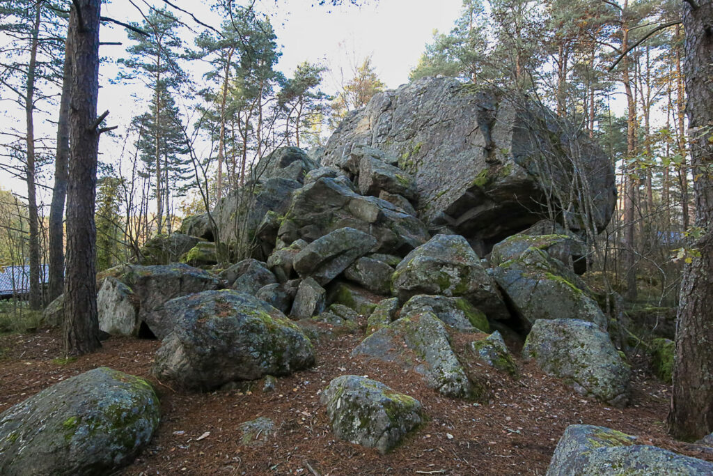 Siirtolohkareet eli hiidenkivet ovat tavallista suurempia kivenlohkareita, joita jääkauden aikainen mannerjää irrotti kallioperästä ja kuljetti nykyisille paikoilleen. Niitä esiintyy maastossa runsaasti. Suurimmat ovat saaneet oman nimen.