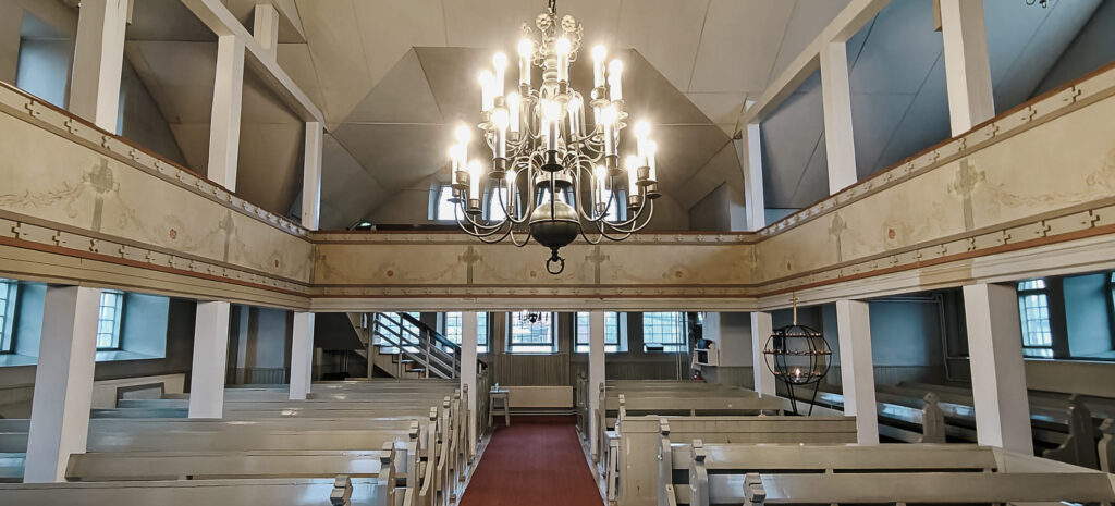 Kyse on ollut kyläläisten yhteisestä ponnistuksesta. Ensin valmistui oma kirkko jo 1600-luvulla, joka kuitenkin myöhemmin paloi. Nykyinen rukoushuone valmistui vuonna 1909. Kun siihen lisättiin komea teräväkärkinen tiilestä tehty torni vuonna 1950, rakennus vihittiin viralliseksi kirkoksi.