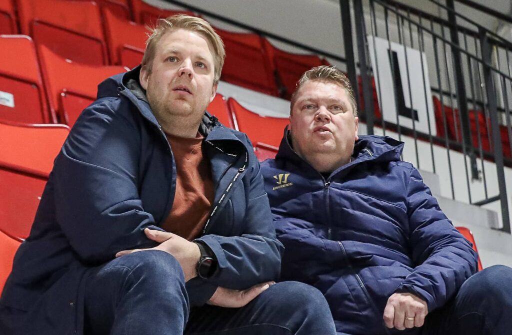 Kaksi kotimaisista kiekkopiireistä tuttua miestä seuraa silmä tarkkana TUTO Hockeyn aamuharjoituksia Kupittaan jäähallilla. Heistä kokeneempi Pekka Virta liittyi turkulaisseuran organisaatioon jo aiemmin.