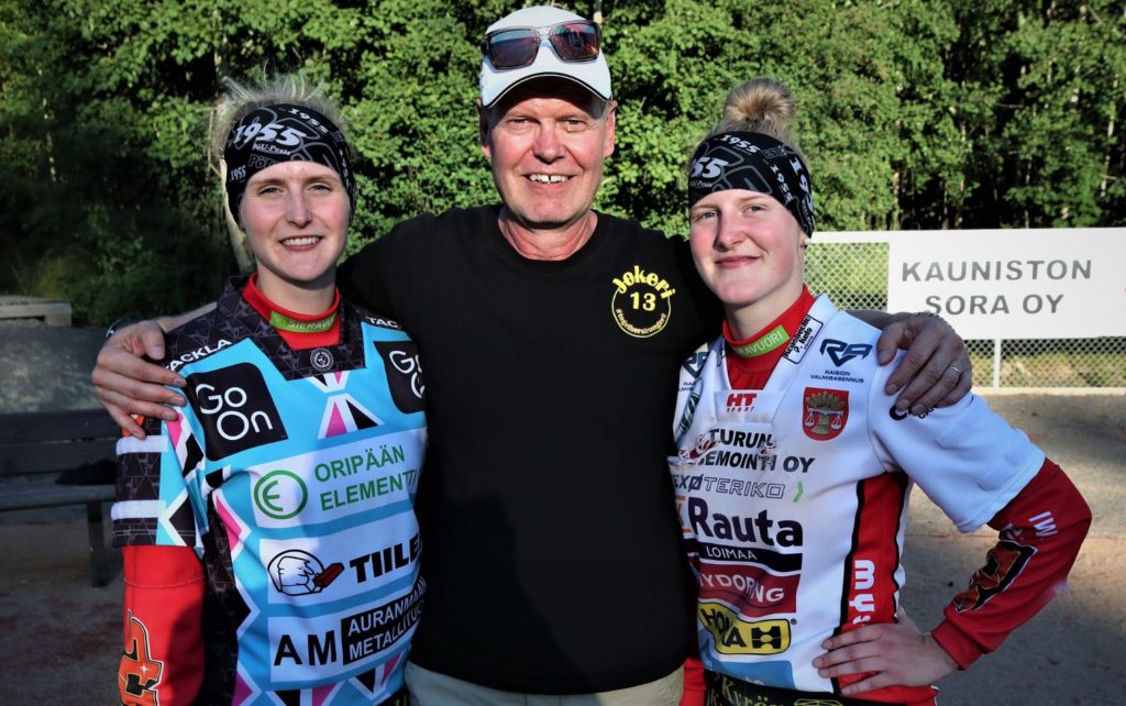 – Ensin vaihtoi Mikko, sitten minä, vaikka minulla ei ole lainkaan pesäpallotaustaa. Lopulta innostus tarttui Kaisaan ja Elisaan, kertoo isä Olli-Pekka, joka on toiminut Pöytyän urheilijoissa joukkueenjohtajana, otteluiden kuuluttajana ja tärkeänä ”yleismiesjantusena”.