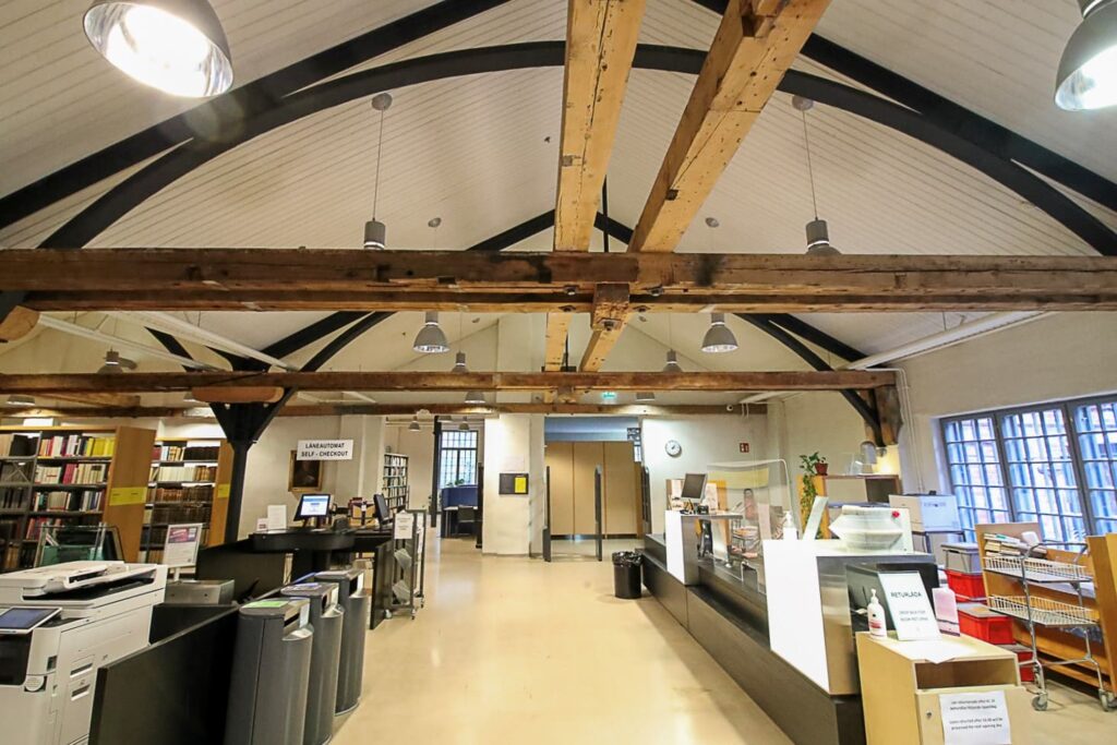 Kaikkialla on valoisaa, kiitos luonnonvalon, joka tulvii isoista ikkunoista, jopa kattoikkunoista. Eräs ”pimeä” paikka käytännön syistä toki löytyy. Se on Armfelt-niminen auditorio, jonka musta sisustus on suunniteltu muistuttamaan vanhaa masuunia.