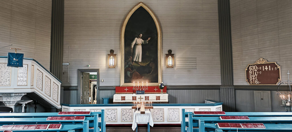 Kirkkoon mahtuu 250 henkilöä.