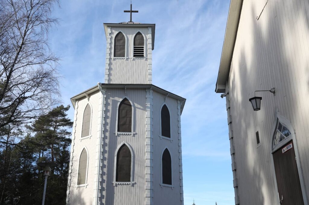 Ruotsalaisen arkkitehdin suunnittelema kirkko valmistui vuonna 1876. Se oli alun perin huomattavasti vaatimattomampi kuin nykyinen kirkko. Siinä ei ollut aluksi minkäänlaista lämmitystäkään, joten sitä voitiin käyttää vain kesäkuukausien aikana.