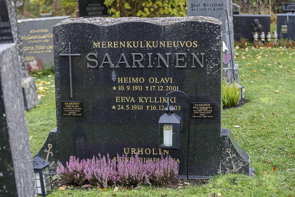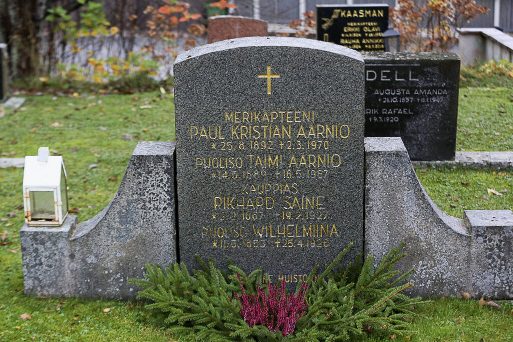 Lähellä sijaitsee myös toisen tunnetun reposaarelaisen hauta, merikapteeni-kauppias Paul Aarnion perhehauta. Hän testamenttasi ison summan rahaa seurakunnalle Reposaaren hautausmaan hoitamiseen.