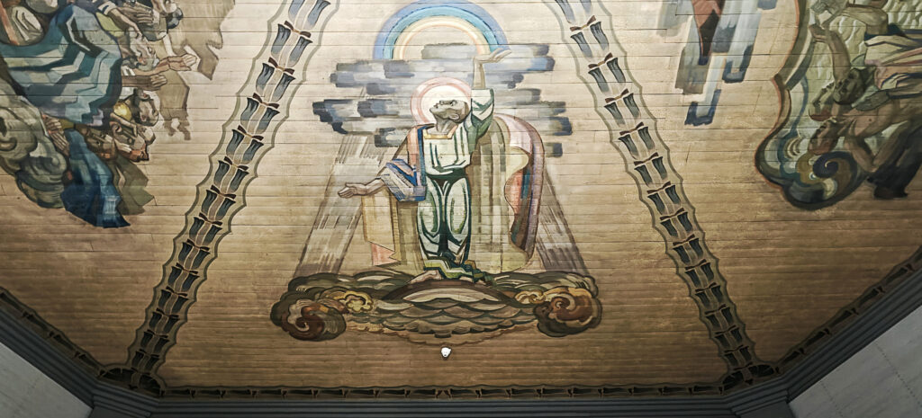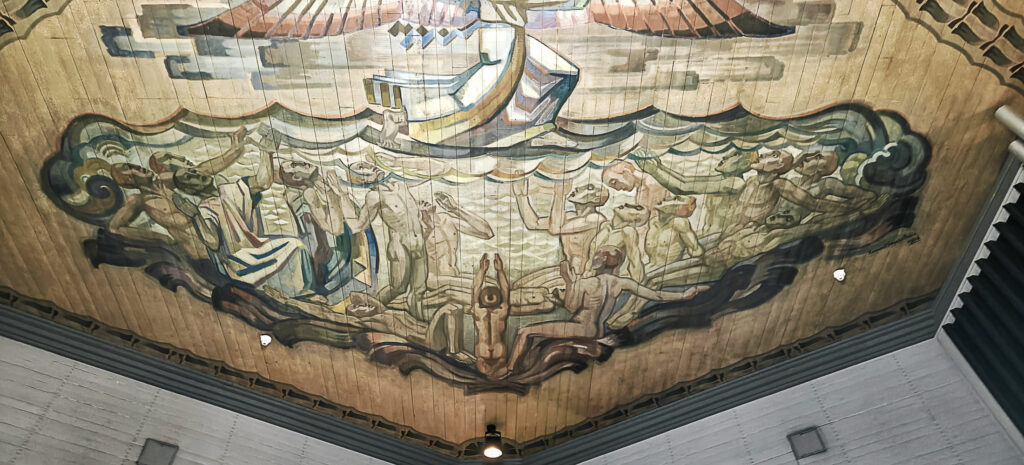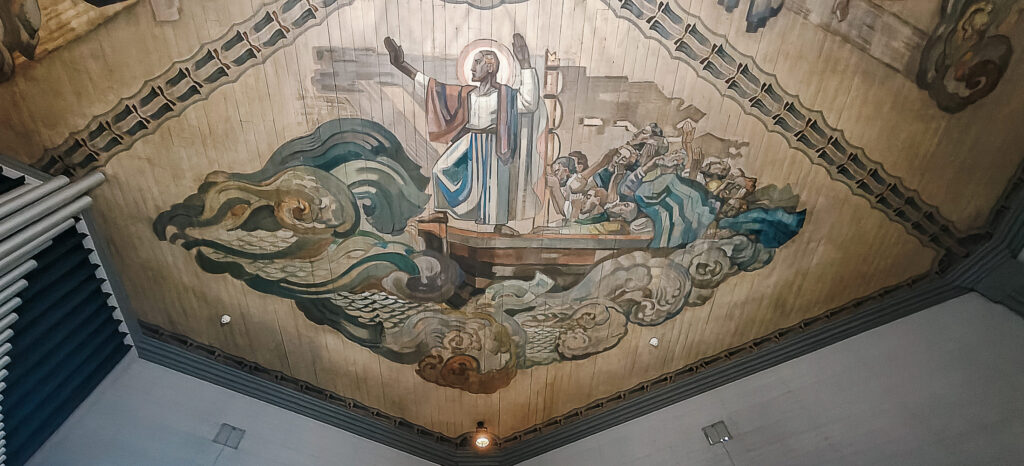 Samalla, kun kirkon sisätilat maalattiin kauttaaltaan, Lennart Segerstråle (1892-1975) maalasi kirkkosalin kattoon suurikokoiset maalaukset: Jumalan liitto Nooan kanssa, Jeesus tyynnyttää myrskyn, Jeesus pelastaa uppoavan Pietarin ja Meri antaa takaisin kuolleet.