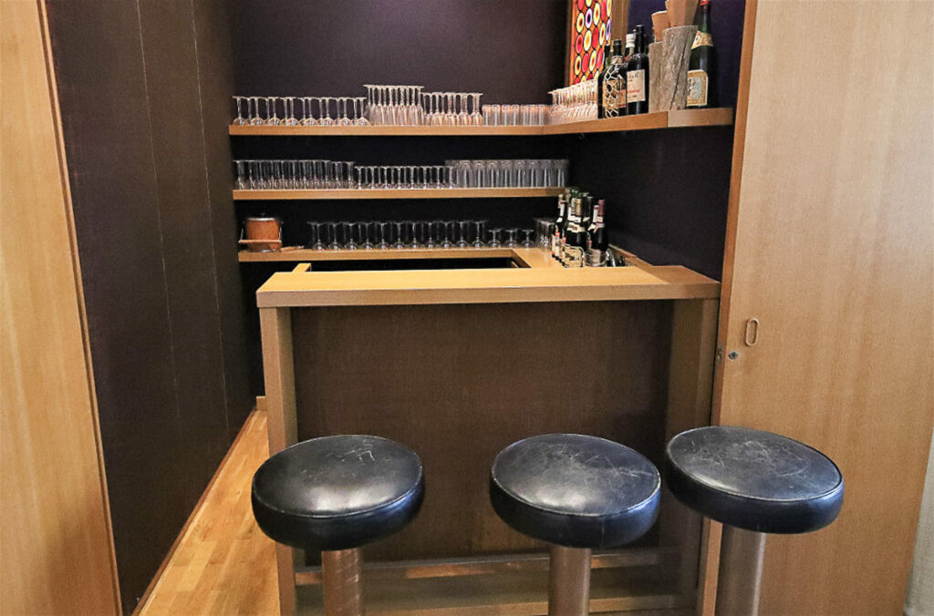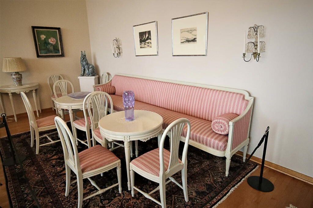 Osa alakerran edustustiloista on sisustettu Presidentinlinnasta tuoduilla huonekaluilla. Uudempaa muotia edustaa Kekkosten hankkima Yrjö Kukkapuron nahkasohva.