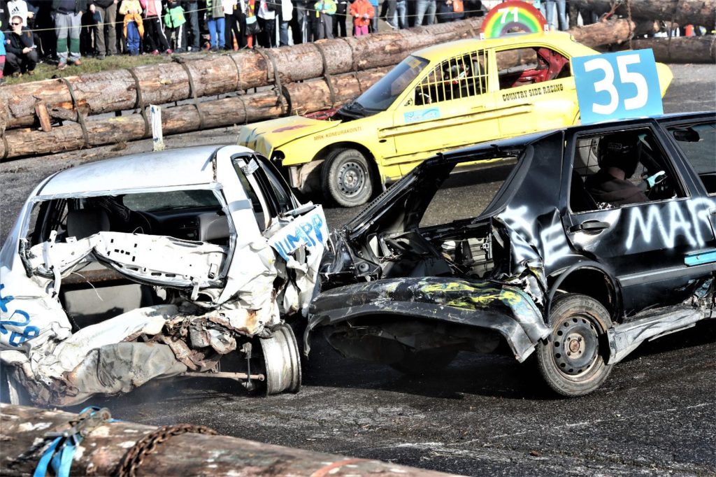 – Tavoitteena on tuhota törmäämällä kilpailijoiden autot ja säilyttää oma auto liikkuvana. Taktisesti on viisainta törmätä oma perä edellä, koska keulassa ovat kaverin auton haavoittuvimmat osat, kertoo kouvolalainen romualan yrittäjä Kristian Laakso, yksi Metsämäen Motor Show’n organisaattoreista.