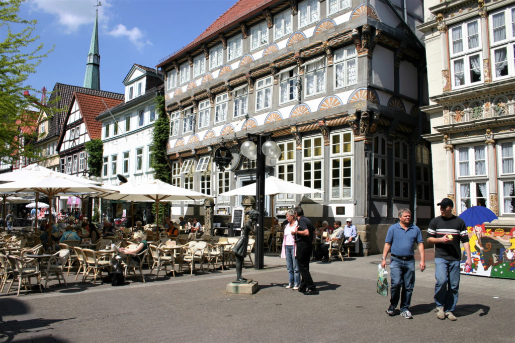Ydinkeskustan halkaisevat kauppoja, kahviloita ja ravintoloita täynnä olevat pääkadut Königstrasse ja Breitestrasse. Jälkimmäisen toisessa päässä sijaitsee Raatihuoneen torin komea kaupungintalo. Kaupunkikierroksen voi päättää nousemalla hissillä Petrikirchenin torniin. Ylhäältä 108 metrin korkeudelta saa nauttia hienoista näköaloista.