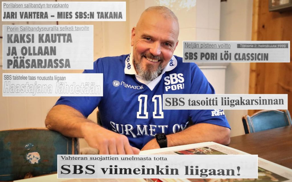 Porilainen Jari Vahtera pyyhkäisee pölyt pois kaapin ylähyllyltä löytyneiden leikekirjojen päältä. Kellarin syövereistä löytyy haastatteluun sopiva entisaikojen sininen pelipaita. Salibandykonkari Vahtera on lupautunut avaamaan porilaisen salibandyn syntyjä syviä – tosin vasta pienen suostuttelun jälkeen.