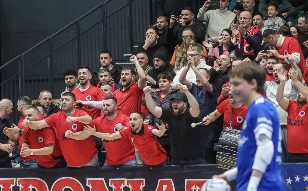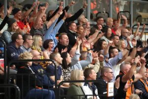 Kun Karhu Basketin faniryhmä saapuu paikalle, kannustusta ja ääntä riittää