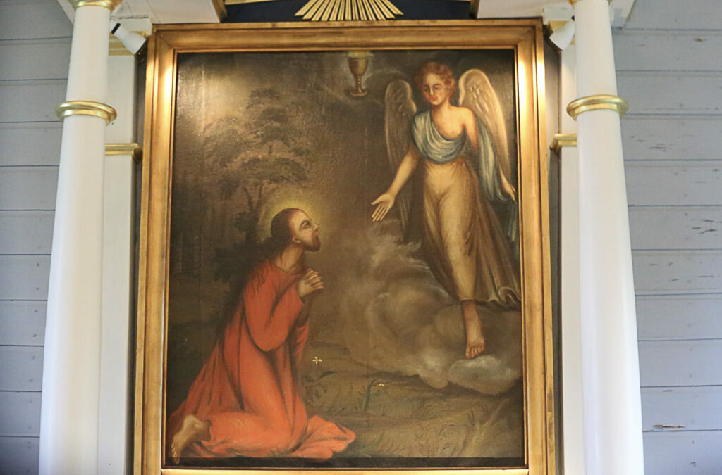 Nykyisin esillä oleva 1820-luvun kaksiosainen alttaritaulu Jeesus rukoilee Getsemanen puutarhassa ja Pyhä Ehtoollinen herätti aikoinaan vilkasta keskustelua. Sitä pidetiin taiteellisesti huonona. Uusi Urho Lehtisen maalaus hankittiin tilalle, tosin vasta vuonna 1960. Sekään ei miellyttänyt seurakuntalaisia, joten se jouti sakariston seinälle ja vanha tuotiin takaisin alttariseinälle vuonna 2013.