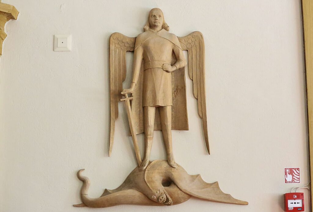 Someron kirkko on niukasti koristeltu. Niinpä alttarin vieressä sijaitseva puuveistos kiinnittää huomion. Albin Kaasisen Mikael ja lohikäärme -puuveistos on vuodelta 1959. Arkkienkeli Mikaelia on pidetty keskiajalla Someron kirkon suojeluspyhimyksenä.