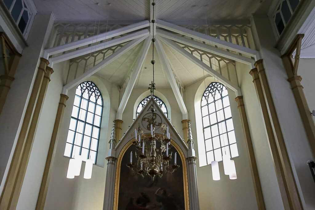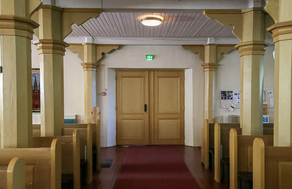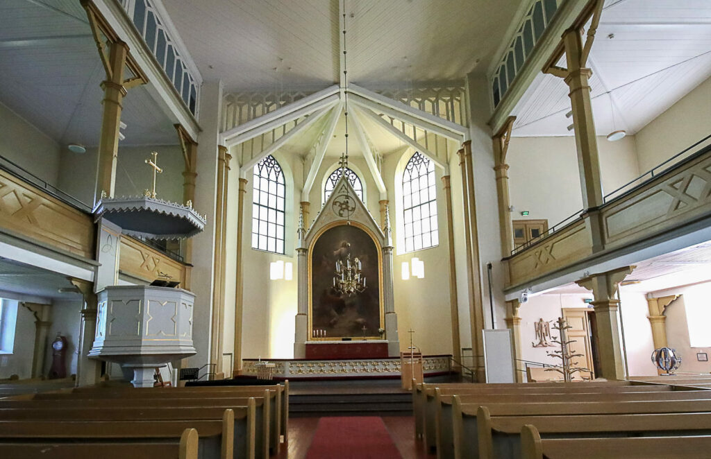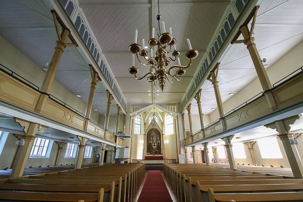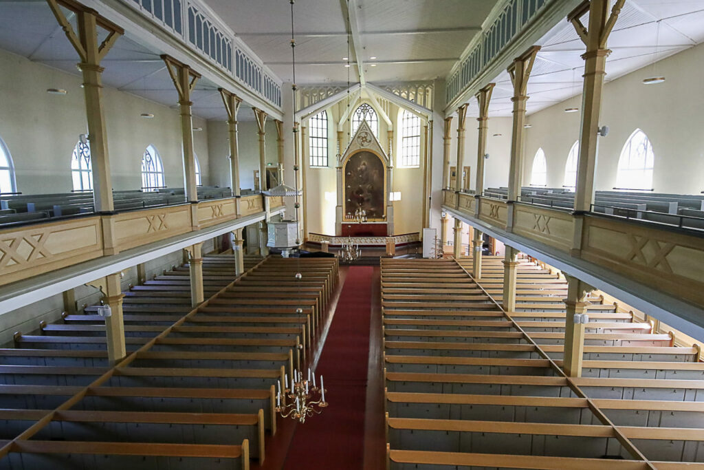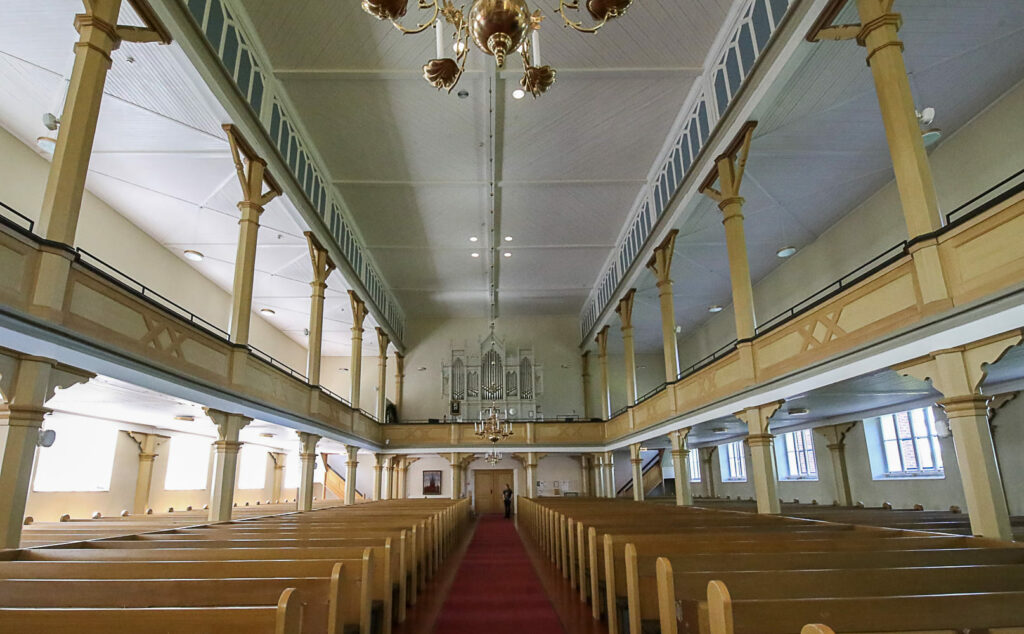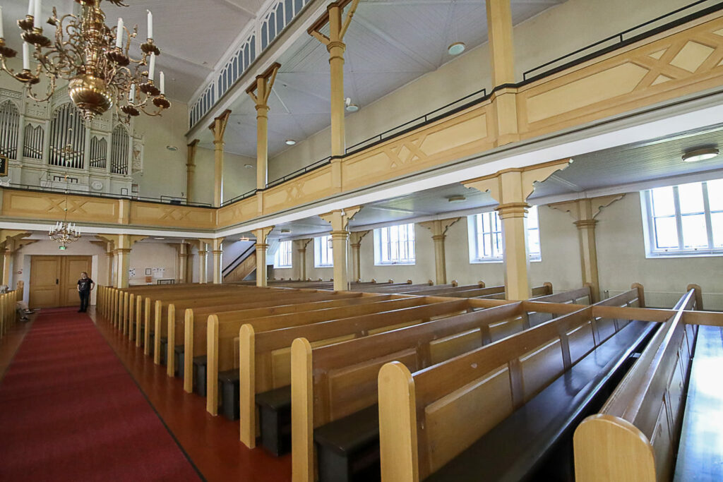 Pelkästään toisen kerroksen poikkeuksellisen tilaville lehtereille mahtuisi kirkkoväkeä enemmänkin.