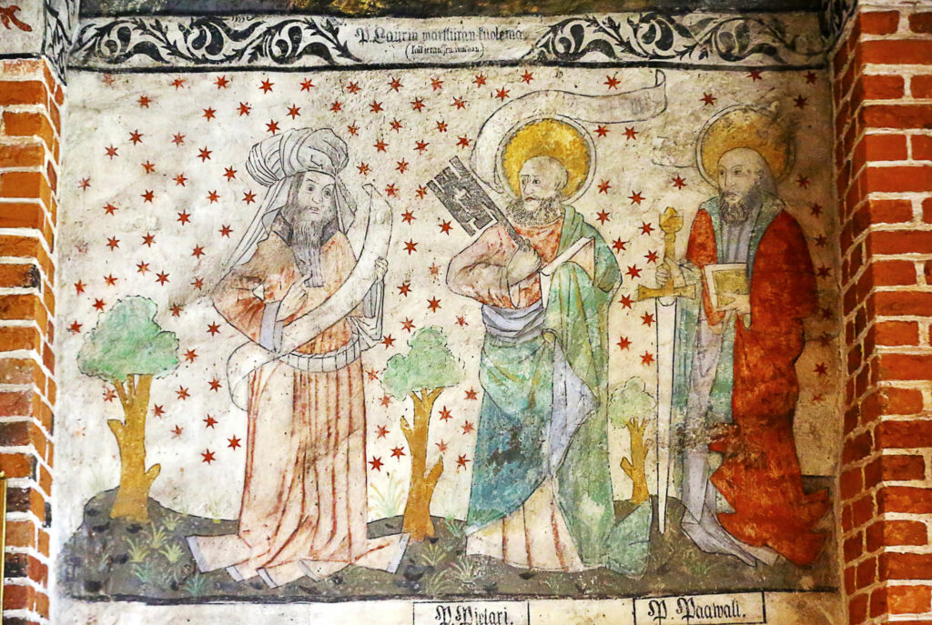Pyhälle Ristille omistetun kirkon seinät maalattiin heti sen valmistuttua, mutta uusien kattoholvien jälkeen kaikki maalaukset menivät uusiksi. Seinien ohella samalla myös katot saivat 1400-luvulla maalaukset. Niiden tekijä tai tekijätkin ovat melko varmasti tiedossa.