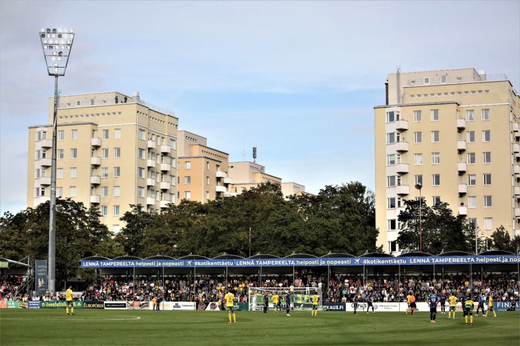 Nautitaan, kun se on vielä mahdollista. Hien haju, makkaran tuoksu, puupenkit, valmentajien katsomoon asti kuuluvat huudot ja aito nurmikenttä ilman kenttää kiertäviä juoksuratoja. Ränsistyneenäkin se on aito jalkapallostadion. Ja mikä erikoisinta, se sijaitsee epäsuomalaisesti keskellä kaupunkia. Tunnelma on kuin Brittein saarilla konsanaan.
