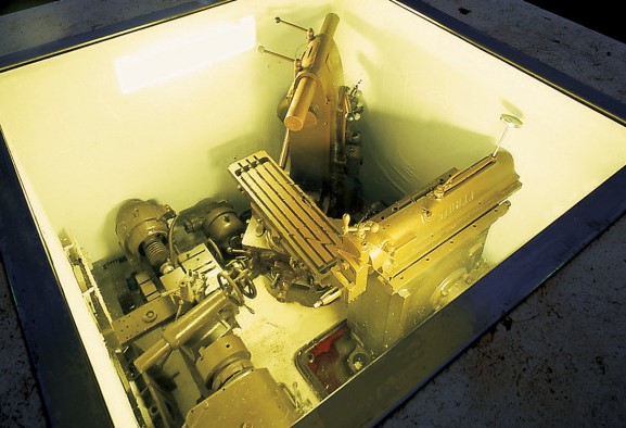 Päiväsaikaan koneita on vaikea erottaa ajan myötä naarmuuntuneen suojalasin läpi. Pimeällä se onnistuu paremmin, kun maanalainen osa on valaistu.