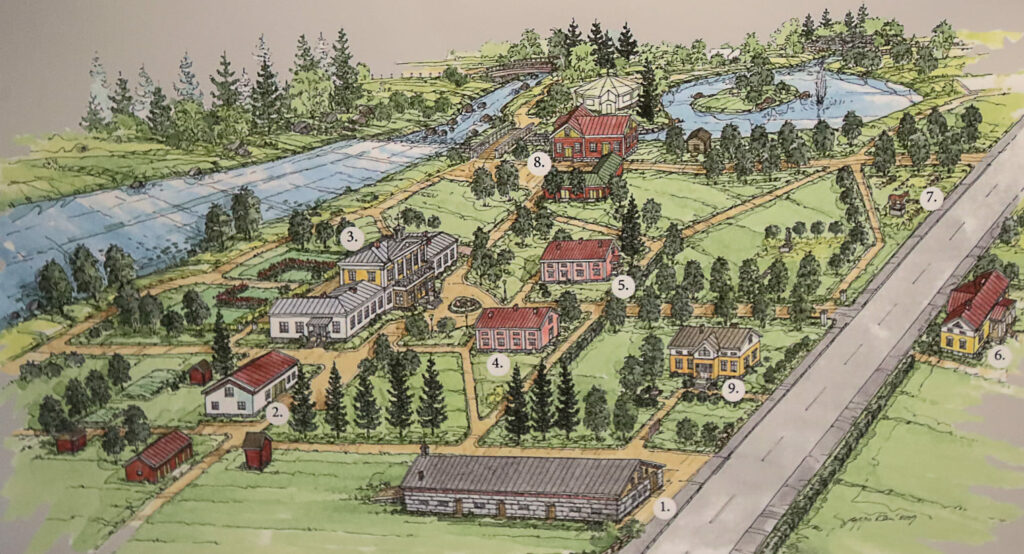 Kartanon ulkorakennukset kuuluvat myös museoalueen kohteisiin. Esimerkiksi työväen entisiin asuinrakennuksiin, Punatulkkuihin, on sisustettu pehtorintupa, verstaita ja maalaisapteekki. Tien toiselle puolelle on siirretty useita rakennuksia eri puolilta maakuntaa. Tälle ulkomuseoalueelle on koottu 1600-1800 -lukujen talonpoikaisrakennuksia.