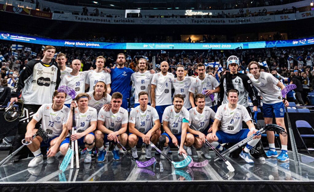 Oskari Fälden takarivissa vasemmalla. Kuva: Salibandyliittoo / Jarmo Leskinen