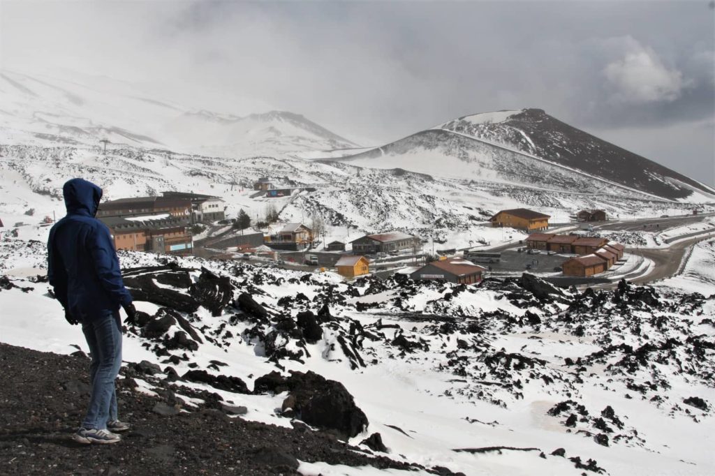 Ajan autolla läpi hotelleja täynnä olevan Zafferna Etnan kylän ja lähden nousemaan serpentiinitietä kohti korkeuksia. Kasvillisuusvyöhykkeet vaihtuvat korkeuserojen mukaan. Alhaalla hedelmällisessä maaperässä kasvavat viiniköynnökset ja hedelmäpuut. Noin 500 metrin korkeudessa hedelmäpuiden tilalla ovat lehtipuut: tammet, pyökit, koivut, pähkinä- ja mantelipuut. 2000 metrin korkeudessa kasvaa vielä harvakseltaan havupuita, mutta sen jälkeen on enää pensaikkoa. Ylhäällä on silmin kantamattomiin mustanharmaita laavakenttiä. Talvella on myös lunta ja jäätä. Silloin täällä lasketellaan. Tuulta vastaan kannattaa suojautua.