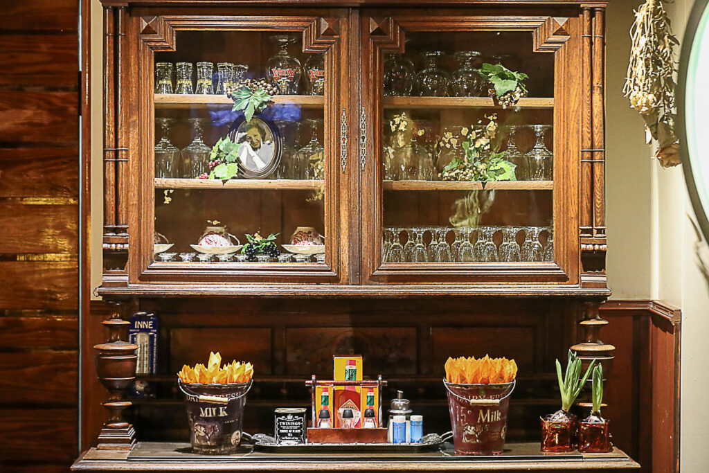 Hiivarissa on esillä useita Tiitan suvun vanhoja muistoesineitä, kuten koristeellisia huonekaluja, muotokuvamaalauksia ja valokuvia. Eräs erikoisuus on baaritiskin ylärivin vanhat pullot. Ne ovat sisältäneet aikoinaan yrttilikööriä, jota myytiin Typhoonissa eli nykyisessä Turkuhallissa pidettyjen jääkiekon MM-kisojen aikaan vuonna 1991.