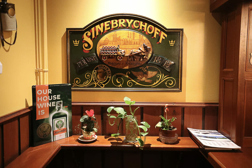 Ja kun itse olutravintola on klassikko, ovat myös ruokalistan annokset klassikkoja. Tarjolla on metsästäjänleikettä, wieninleikettä, kermassa haudutettua pyttipannua ja olutmestaria kermaisella kastikkeella. Eli tarjolla on kursailematonta kasarimurkinaa.