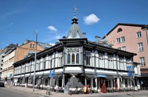 Katseenvangitsija. Arkkitehti Fritjof Strandellin jugendhelmi. Turun keskustan kaunein puutalo. Romanttinen konttorirakennus. Käsityöläiskadun ja Yliopistokadun koristeellista kulmataloa voi tituleerata monilla eri sanoilla… LUE LISÄÄ