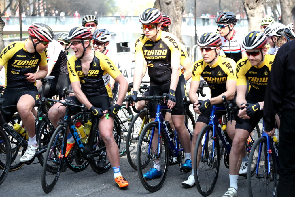 – Kilpa-asun alla ei käytetä alusasua. Sauma rikkoo ihon. Pyöräilijälle ehjä takapuoli on kaikkein tärkein. Asun pitää olla tiukka, aivan ihonmyötäinen, jotta ilmanvastus olisi mahdollisimman pieni.