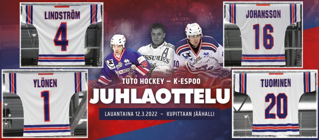 Pelipäivä on aina juhlapäivä, mutta ensi lauantaina Kupittaalla vietetään tavallista suurempaa juhlapäivää. Kotijoukkue TUTO Hockey pelaa Kiekko-Espoota vastaan. Samalla hallin orsille ikuistetaan kolme uutta pelipaitaa. Urpo Ylönen, Seppo Lindström, Kari Johansson ja Jouni Tuominen saavat seuraa.