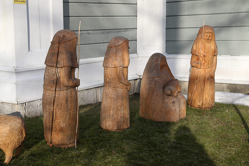 Alttaritaulun molemmin puolin ovat jalustan päällä kookkaat enkelipatsaat, jotka seurakunta hankki Saksasta.