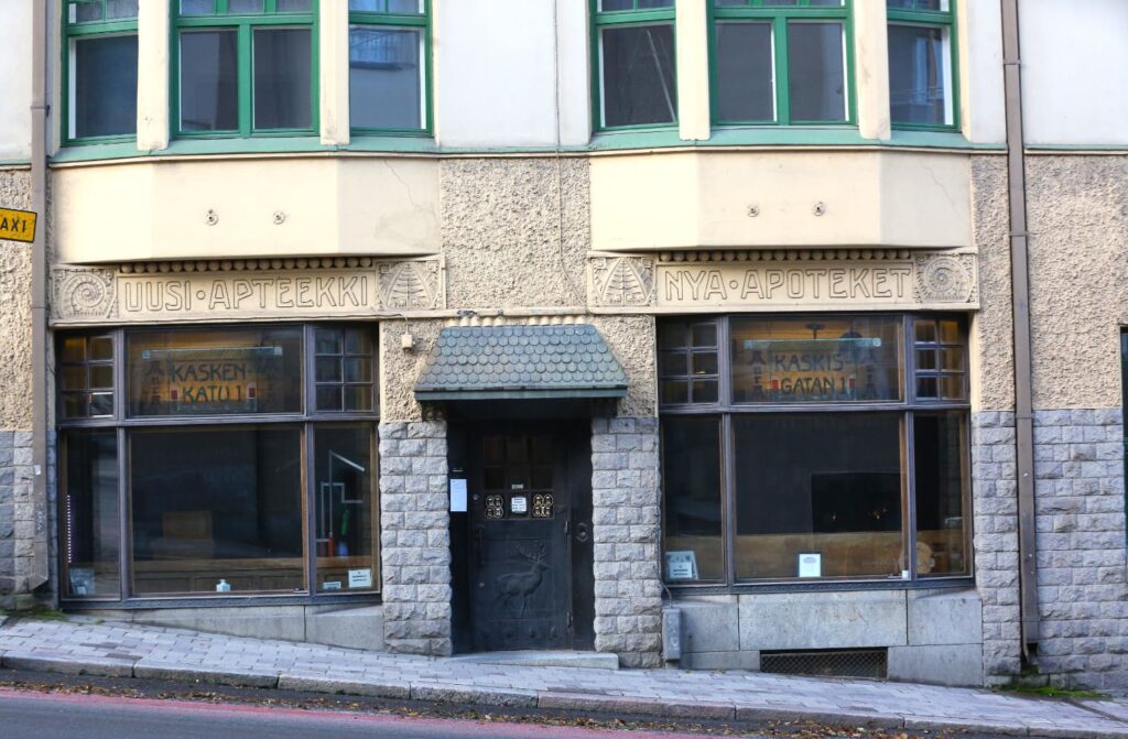 Kanta-asiakkaat puhuvat kuitenkin Apteekista, onhan paikan julkisivun ikkunoiden yläpuolellekin ikuistettu Uusi Apteekki – Nya Apoteket.