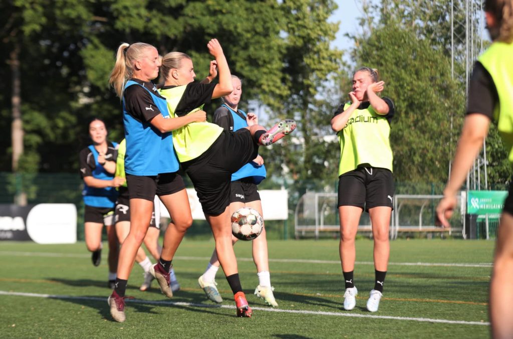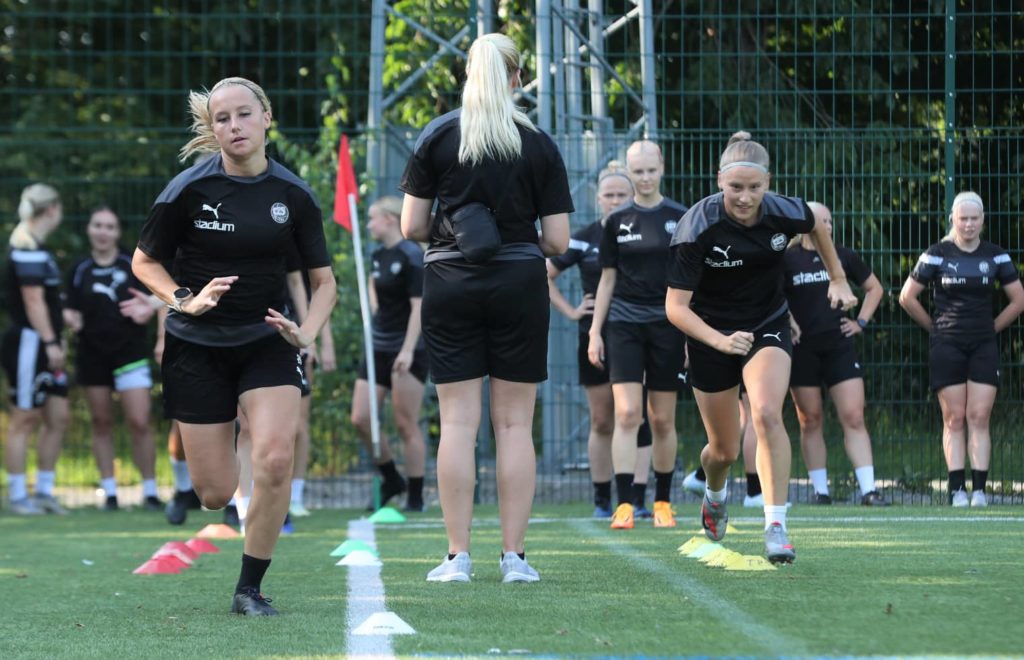 TPS 100 vuotta. Yläkentän lämpömittari näyttää liki 30 astetta. Aurinko porottaa pilvettömältä taivaalta. Kuumat olosuhteet eivät tunnu vaikuttavan mitenkään harjoittelutempoon. TPS:n naisten valmentaja Akusti Salonen ohjeistaa pelaajiaan lyhyillä, mutta terävillä komennoillaan.