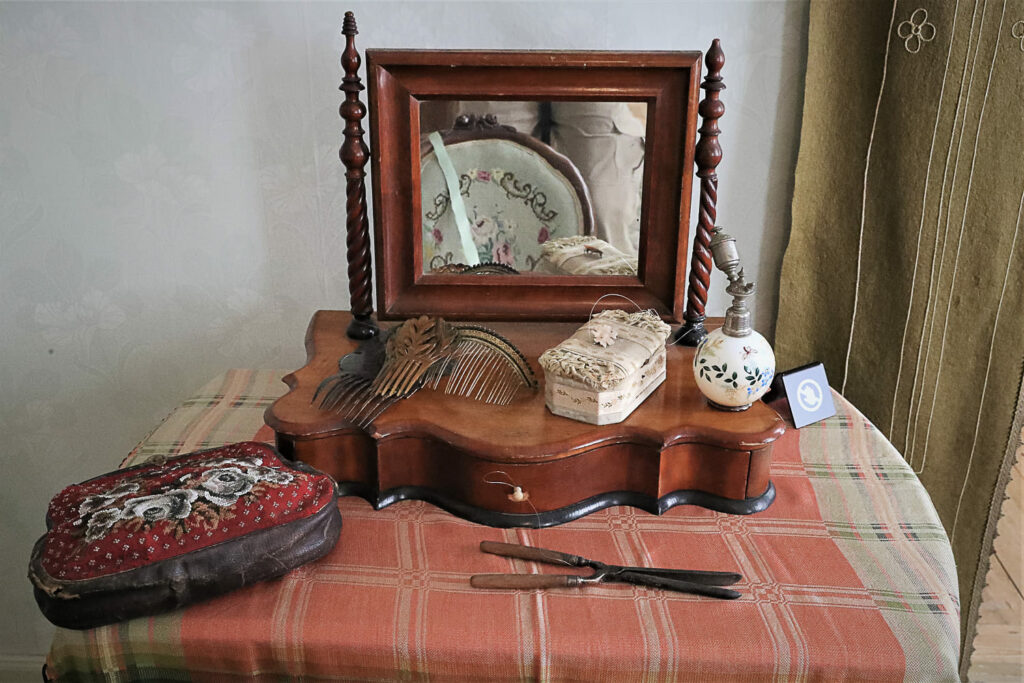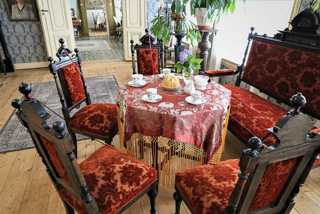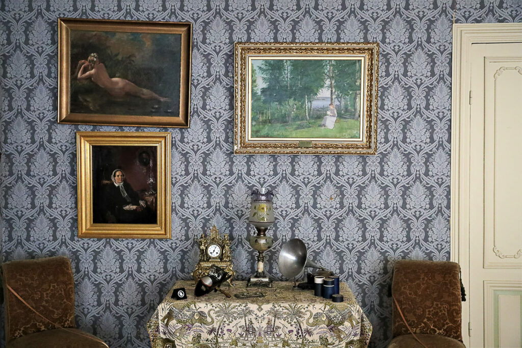 Paljon on säästynyt tähän päivään asti, vaikka vain osa esineistä on kuulunut talon alkuperäisille omistajille. Useat muut esillä olevat esineet ovat kuuluneet Blom-suvulle.
