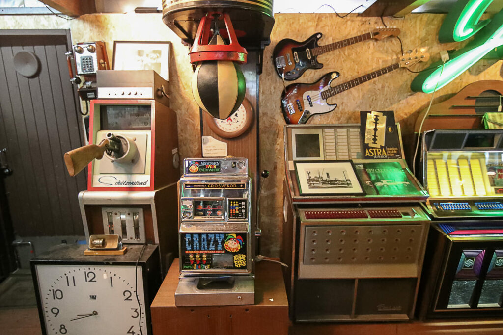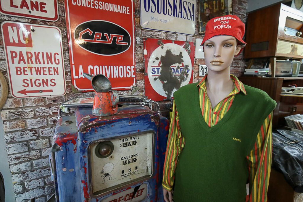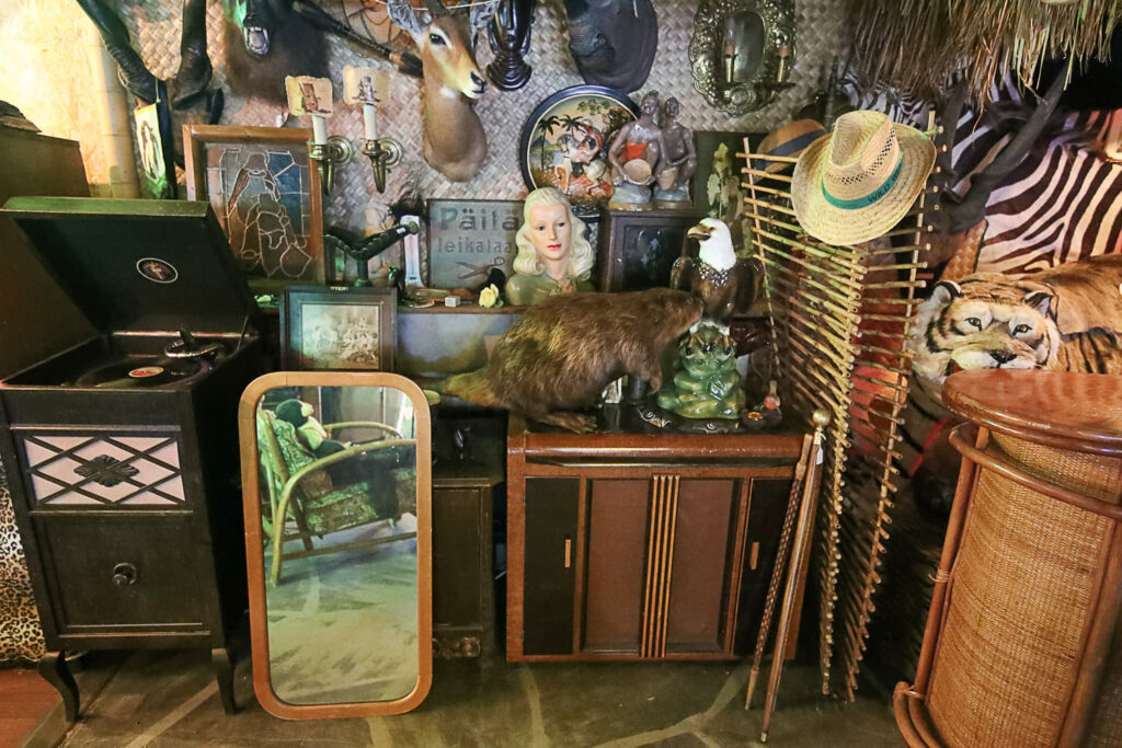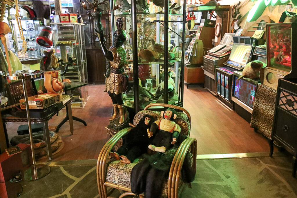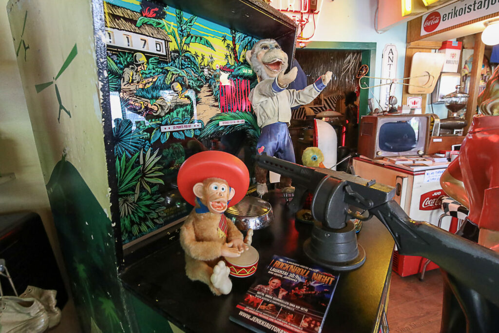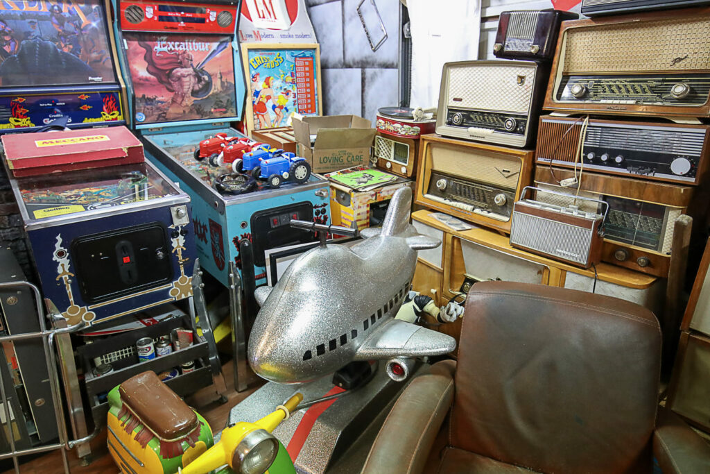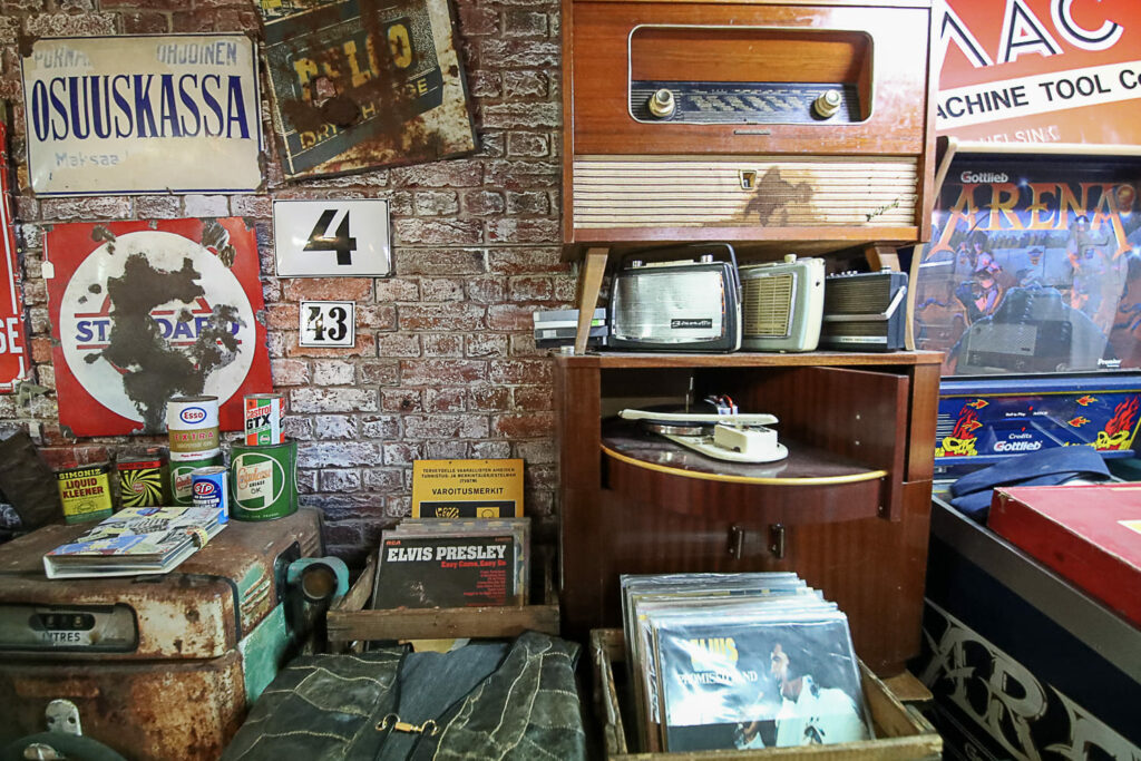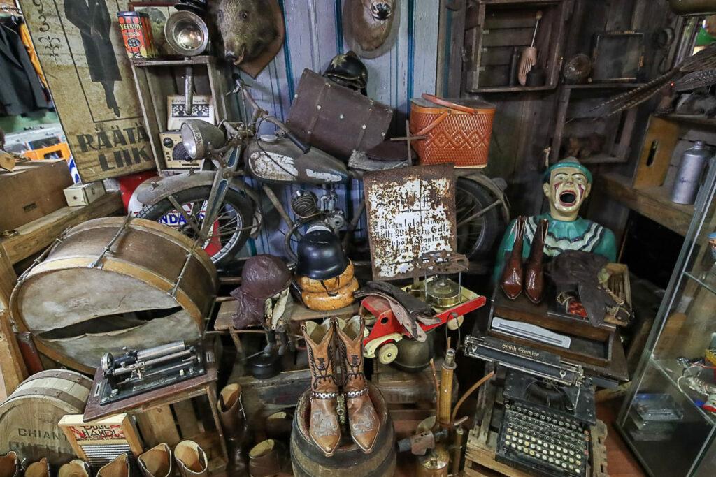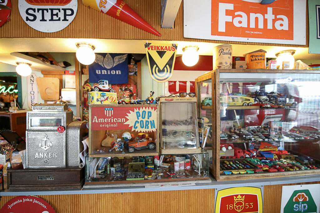 Ihmemaailman sisätilat ovat täynnä toinen toistaan kiinnostavimpia esineitä. Hyllyt suorastaan notkuvat nostalgisista tavaroista lattiasta kattoon. Täällä eletään aikaa ennen viivakoodin keksimistä.
