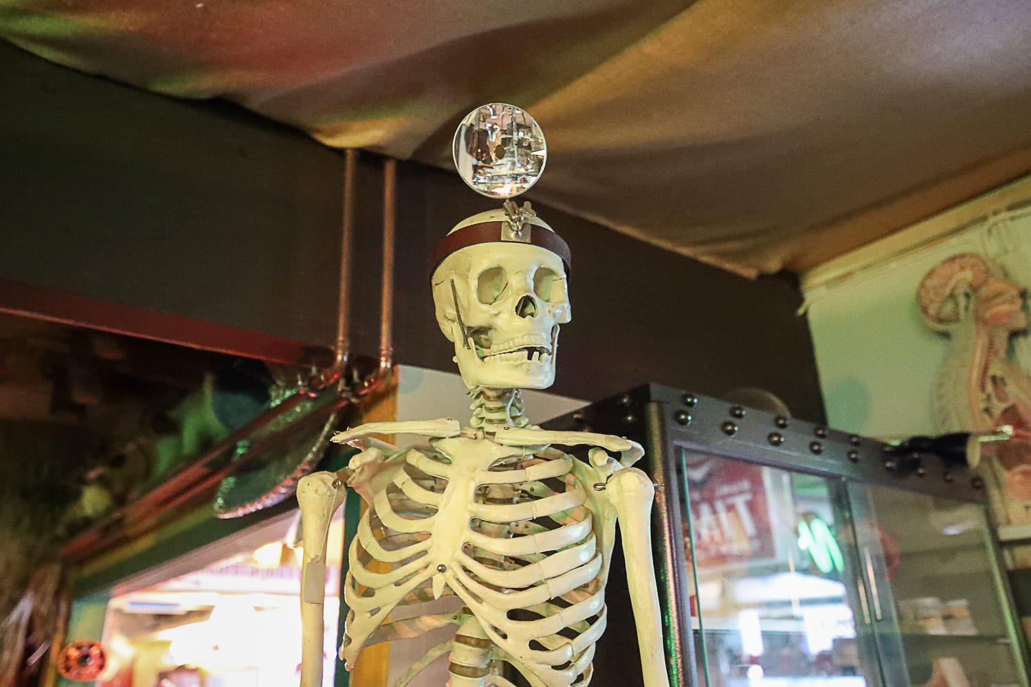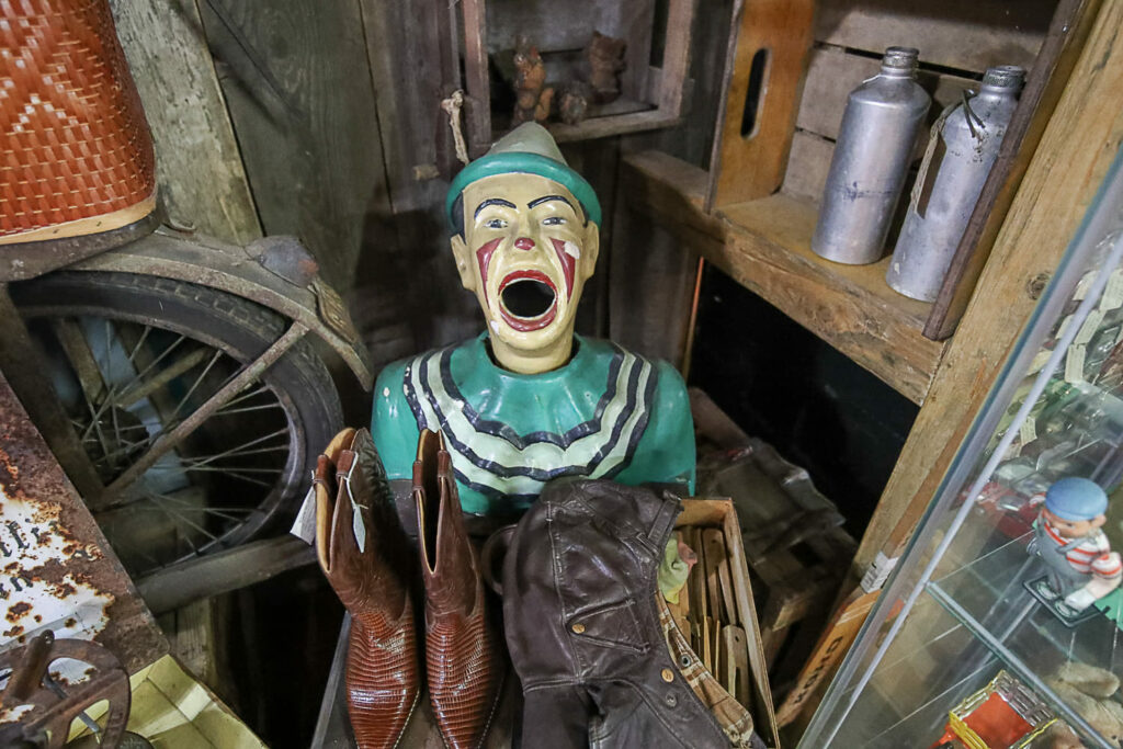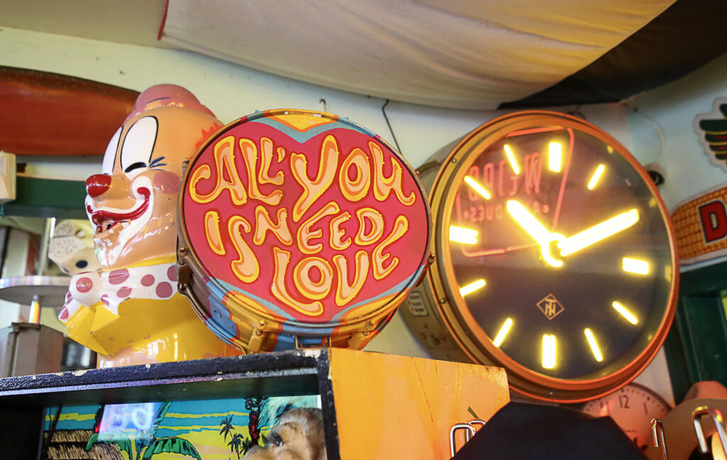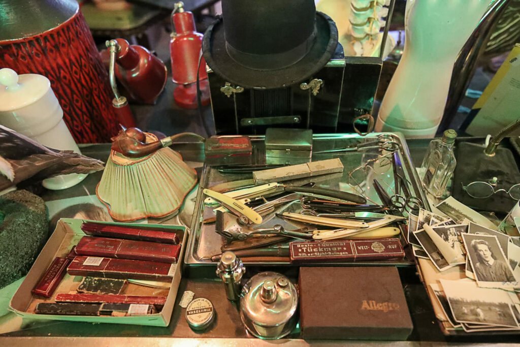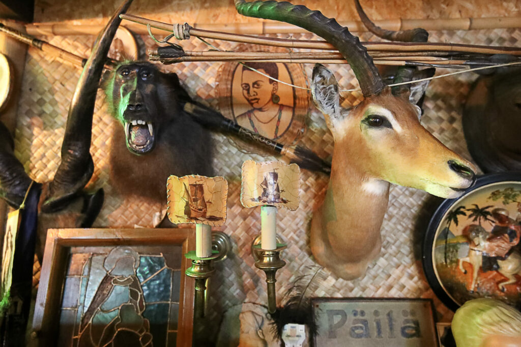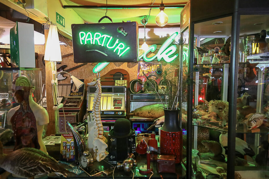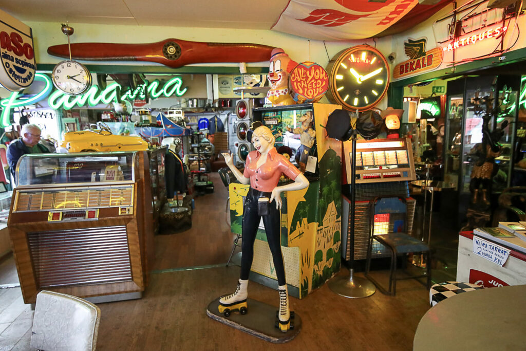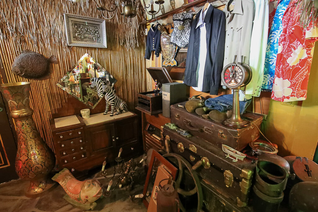 Ihmemaailman sisätilat ovat täynnä toinen toistaan kiinnostavimpia esineitä. Hyllyt suorastaan notkuvat nostalgisista tavaroista lattiasta kattoon. Täällä eletään aikaa ennen viivakoodin keksimistä.