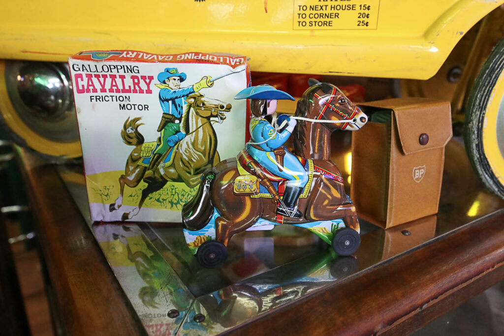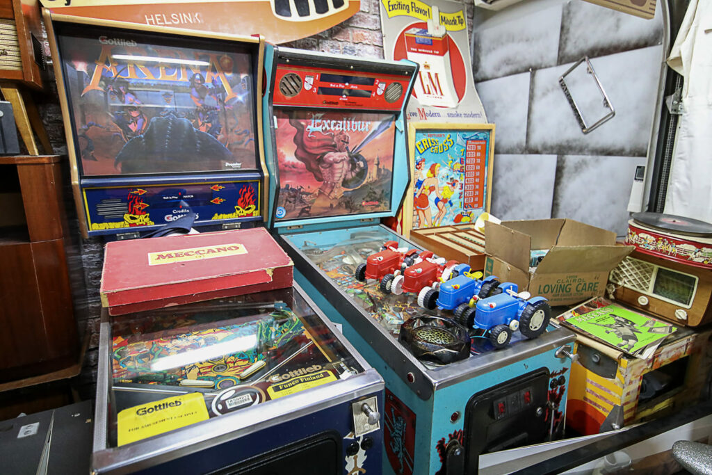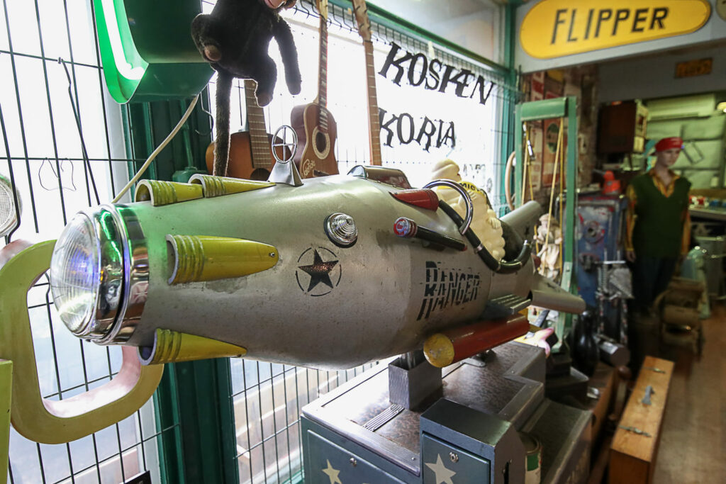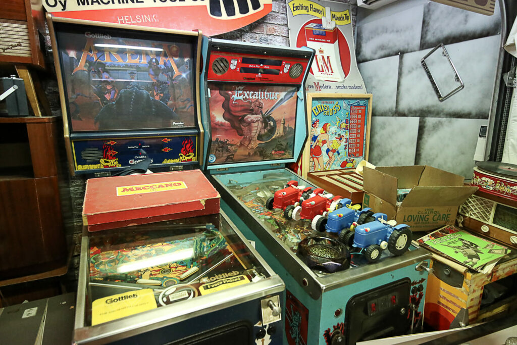 Poikkeaminen Weird Antiques -liikkeeseen on monelle samalla nostalginen matka omaan nuoruuteen. Jo pelkästään esillä olevat lukuisat peltilelut ovat monille tuttuja vuosikymmenien takaa. Vintage-miesten televisio-ohjelmassakin usein vilahtava lapsille tarkoitettu vanha kuuraketti oli 1950-luvulla Helsingin Stockmannin tavaratalon leluosastolla.