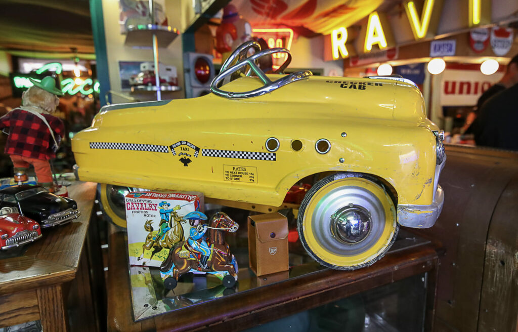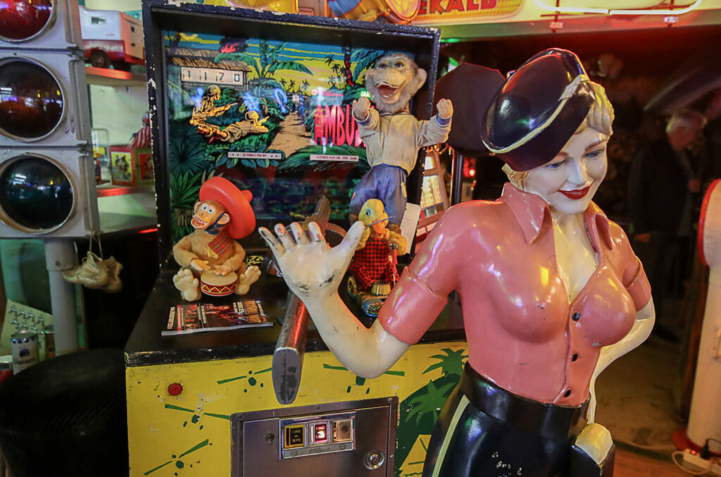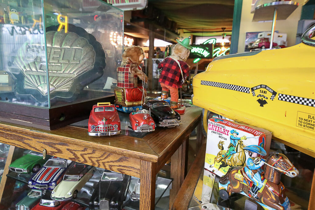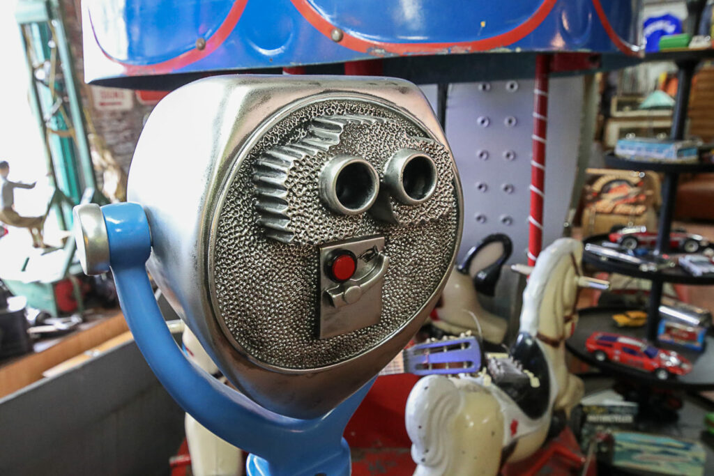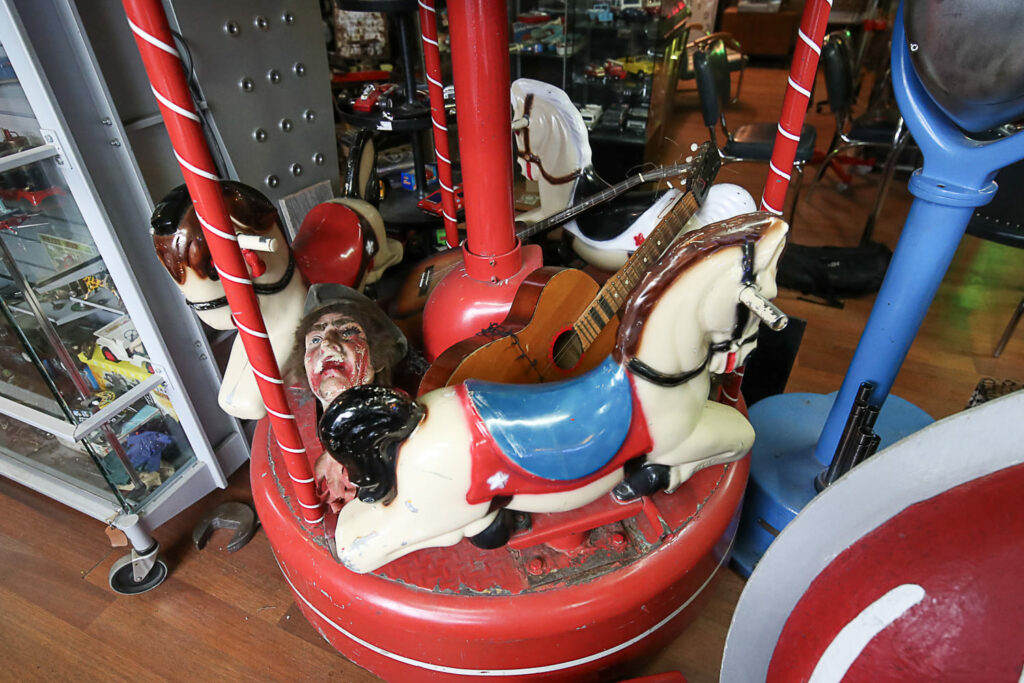 Poikkeaminen Weird Antiques -liikkeeseen on monelle samalla nostalginen matka omaan nuoruuteen. Jo pelkästään esillä olevat lukuisat peltilelut ovat monille tuttuja vuosikymmenien takaa. Vintage-miesten televisio-ohjelmassakin usein vilahtava lapsille tarkoitettu vanha kuuraketti oli 1950-luvulla Helsingin Stockmannin tavaratalon leluosastolla.