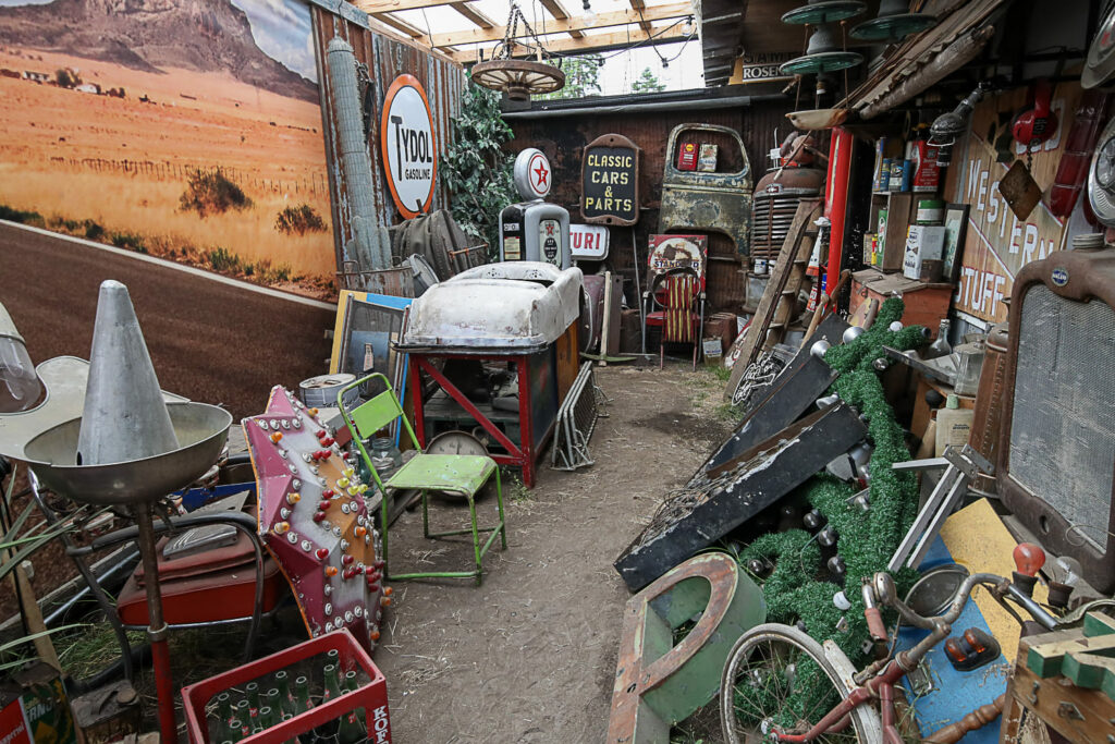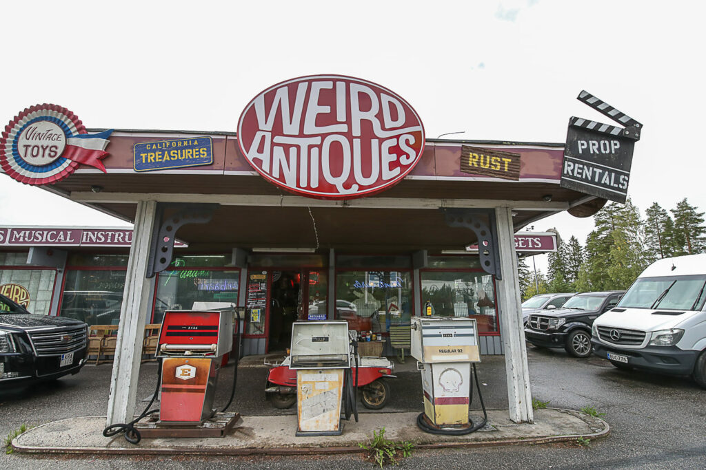 Bensaa ei asemalta enää saa, mutta jos on käyttöä alakoulujen vitriineistä pelastetuille täytetyille eläimille, jukeboxille, flipperille, vanhoille neonvalokylteille…ylipäätään kaikelle omituisuuksille tai ainakin nostalgisille tavaroille, on Weird Antiques oikea paikka.