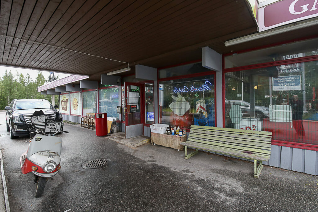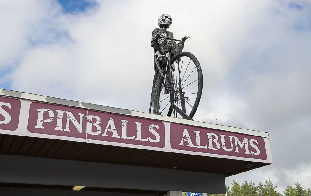 UUSIMAA / TUUSULA – Paikkaa ei voi olla huomaamatta. Moni Helsingistä Tuusulan kautta Hyvinkäälle kulkeva autoilija (Kantatie 45) on ihmeissään, kun näkee vanhan huoltoaseman katolle laskeutuneen helikopterin (on väliaikaisesti kunnostuksessa) ja luurangon ajavan entisaikojen polkupyörällä.